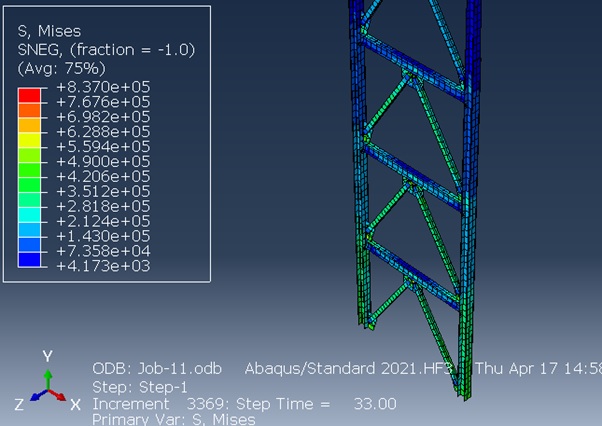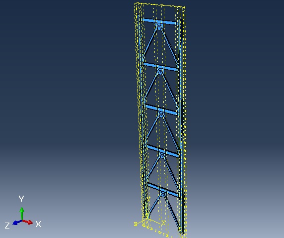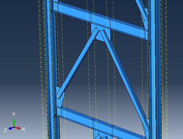 اطلاعات مدلسازی المان محدود قاب مهاربند شده به شرح ذیل می باشد:1-از المان Shell مرتبه Quadratic جهت مدلسازی استفاده شده است، 2-نمودار تنش-کرنش بصورت کامل (الاستیک+پلاستیک) به مدل معرفی شده است، 3-براي شبيه سازی رفتار فولاد از خصوصيت رفتاری پلاستيک کتابخانه آباکوس و معيار تسليم فون ميسز استفاده شده است، 4-جهت اتصال قطعه ها به یکدیگر از قید tie استفاده شده است، 5-قیود تکیه گاهی به صورتی اعمال شده اند که پای ستون بصورت گیردار ولی در جهت اعمال بار زلزله براحتی حرکت می کند.6- شتاب زلزله طبس به تکیه گاه اعمال گردیده است، 7- با توجه به پیچیدگی اتصال، مشبندی به صورت کاملا منظم و استاندارد صورت گرفته است